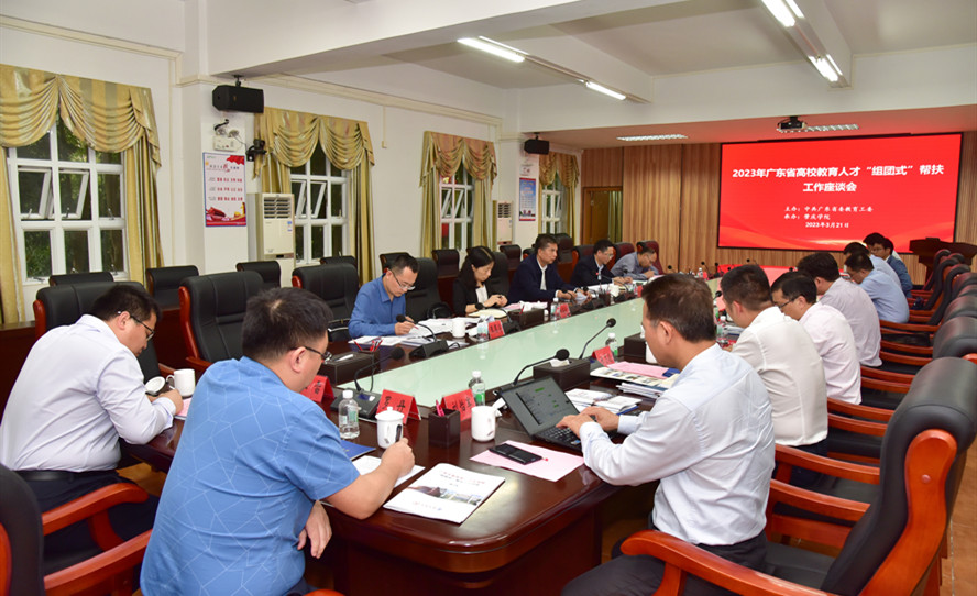 本网讯 3月21日,2023年广东省高校教育人才“组团式”帮扶工作座谈会在我校临峰厅举行。省委教育工委副书记、省教育厅党组副书记李大胜,省委教育工委干部处处长陈东海、副处长林筱毅,校党委书记曾桓松、党委委员、组织部部长欧洪湛出席,各高校帮扶队队长、广东工业大学帮扶队队员参加。会议由陈东海主持。